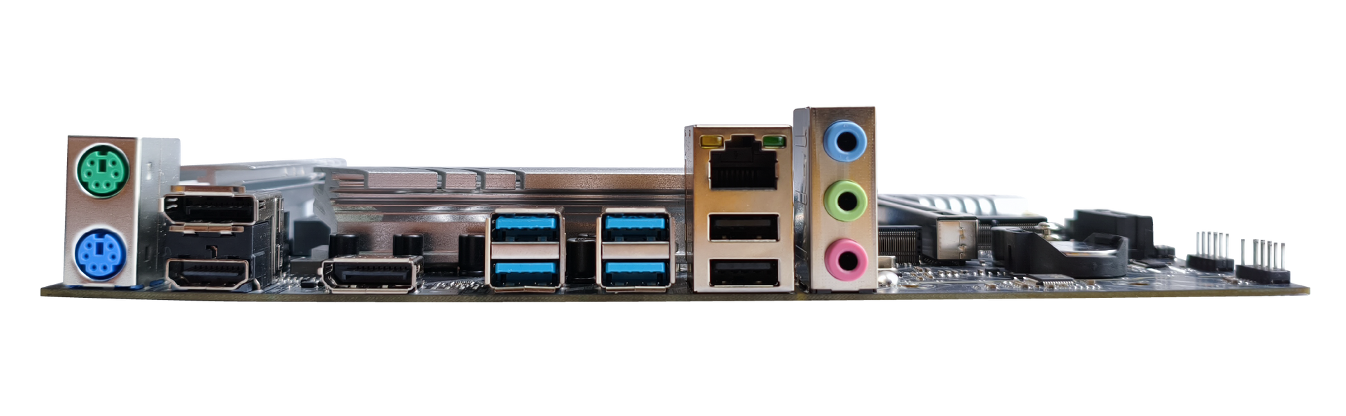 4x USB 3.2 Gen 1 ports (4 x Type-A) 2 x USB 2.0 ports (2 x Type-A) 1 x HDMI® port 2 x Display Port port 1 x Realtek 1Gb Ethernet port 3 x Audio jacks 2 x PS/2 Keyboard/Mouse combo port |