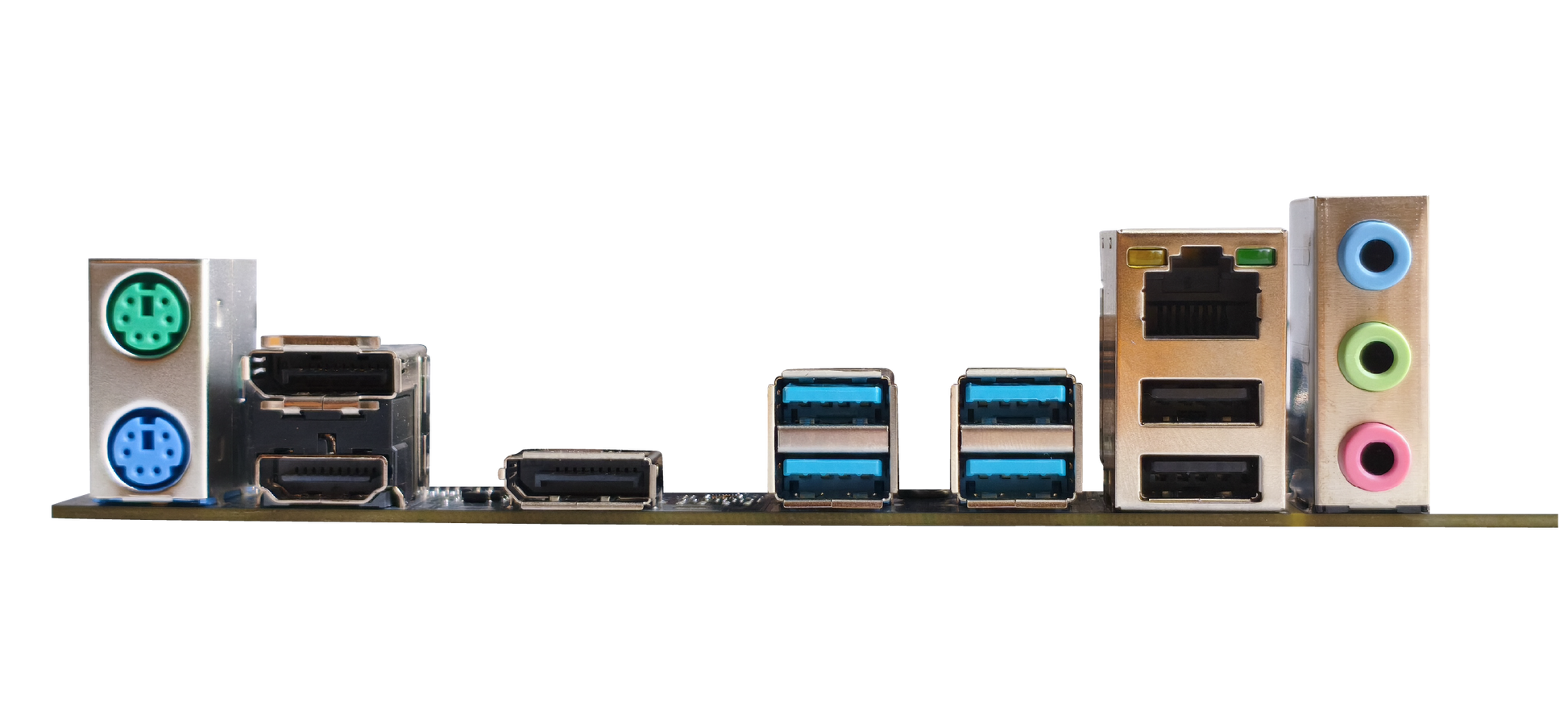4x USB 3.2 Gen 1 ports (4 x Type-A) 2 x USB 2.0 ports (2 x Type-A) 1 x HDMI® port 2 x Display Port port 1 x Realtek 1Gb Ethernet port 3 x Audio jacks 2 x PS/2 Keyboard/Mouse combo port |